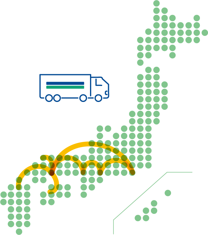 法人顧客との取引を中心に生産から消費まで、国内での輸送に双葉グループのネットワークでサポートします。
